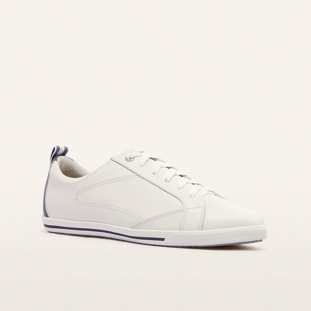 An exceptional essential—Asher in classic White/Denim. A low-profile sneaker that blends effortless style with superior comfort. Designed with custom fitting options, a triple-layered support system, and a podiatrist-designed footbed, Asher is the ideal sneaker for all-day wear. Subtle FRANKIE4 detailing adds a touch of elegance, while denim-toned leather accents on the heel give it a modern edge. Elevate your look with Asher, where style meets comfort in every step.