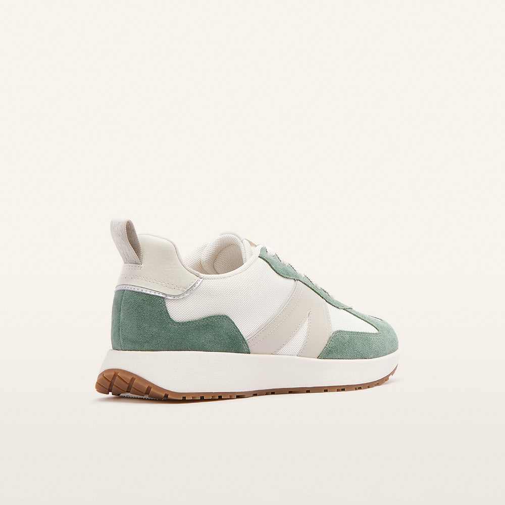 The wardrobe-redefining sneaker. Axel in Chalk and Eucalyptus blends luxe suede and leather, with a pop of colour that makes a statement. Engineered with triple-layered support, arch-cradling cushioning, and custom fitting options, this sneaker lifts, supports, and moves with you—step after step.