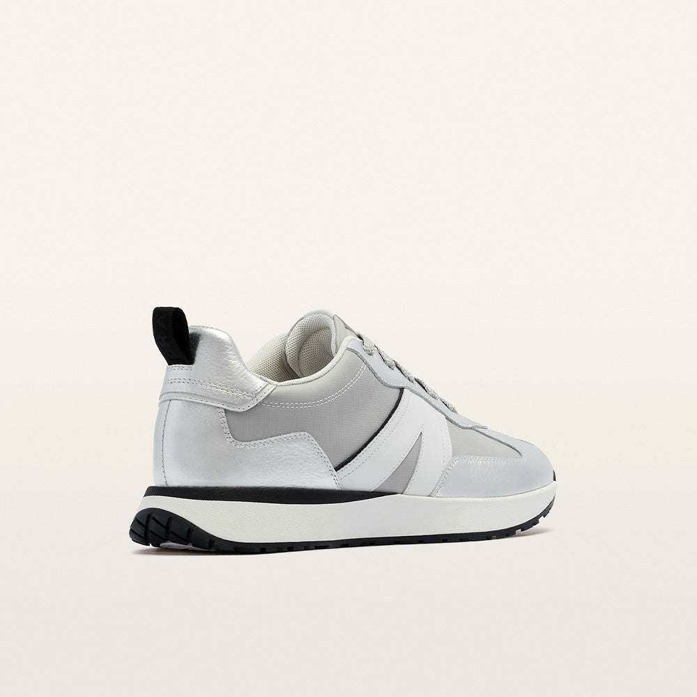 As dependable as your favourite jewellery: Axel II in Silver. Standout silver tones add an eye-catching twist to an essential silhouette, making this metallic sneaker a versatile addition to any rotation. Engineered with four-layered support, arch-cradling cushioning, and custom fitting options, Axel blends sport-luxe style with effortless comfort, wherever your day takes you.