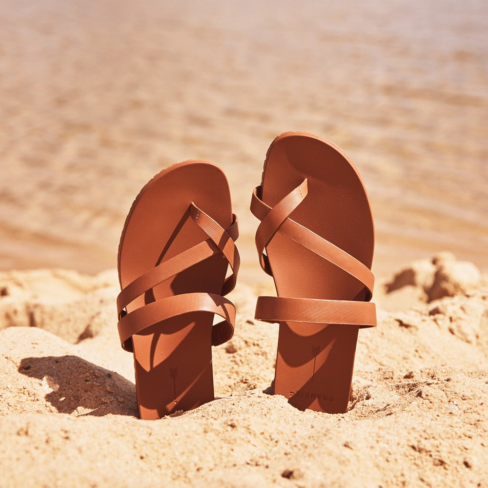 Isla, the beach-proof slide that brings warm, sun-soaked style to every step in Rich Tan. Crafted with waterproof-treated leather for the upper and lining, making Isla perfect for seaside adventures and pool-to-party styling. The hidden elastic on the instep provides a secure, flexible fit, while the lightweight design ensures a cushioned step.