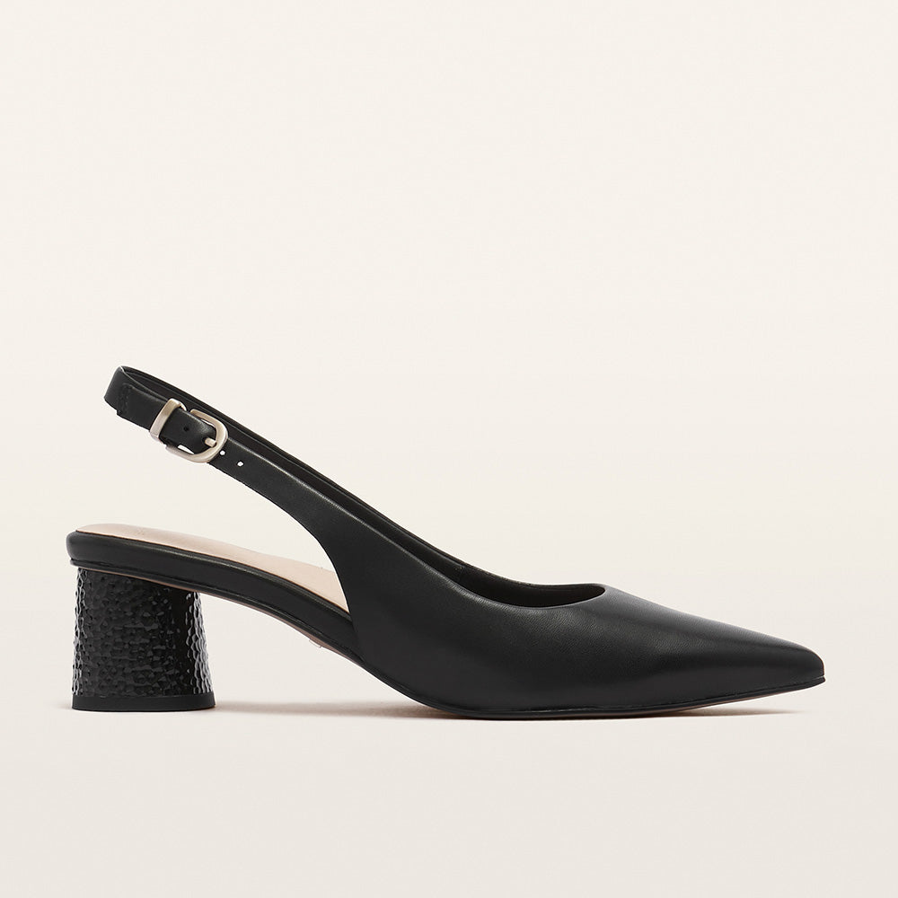 Step into timeless sophistication with Juno in Black, a mid-height slingback heel designed for effortless elegance. Featuring a refined pointed toe and textured heel detailing, Juno brings polish to every occasion. Built on our podiatrist-designed LuxaLite® footbed, it delivers slimline underfoot cushioning and targeted arch support for elevated comfort. With its sleek silhouette and secure slingback strap, it’s the heel that lets you dress up without the downside.
