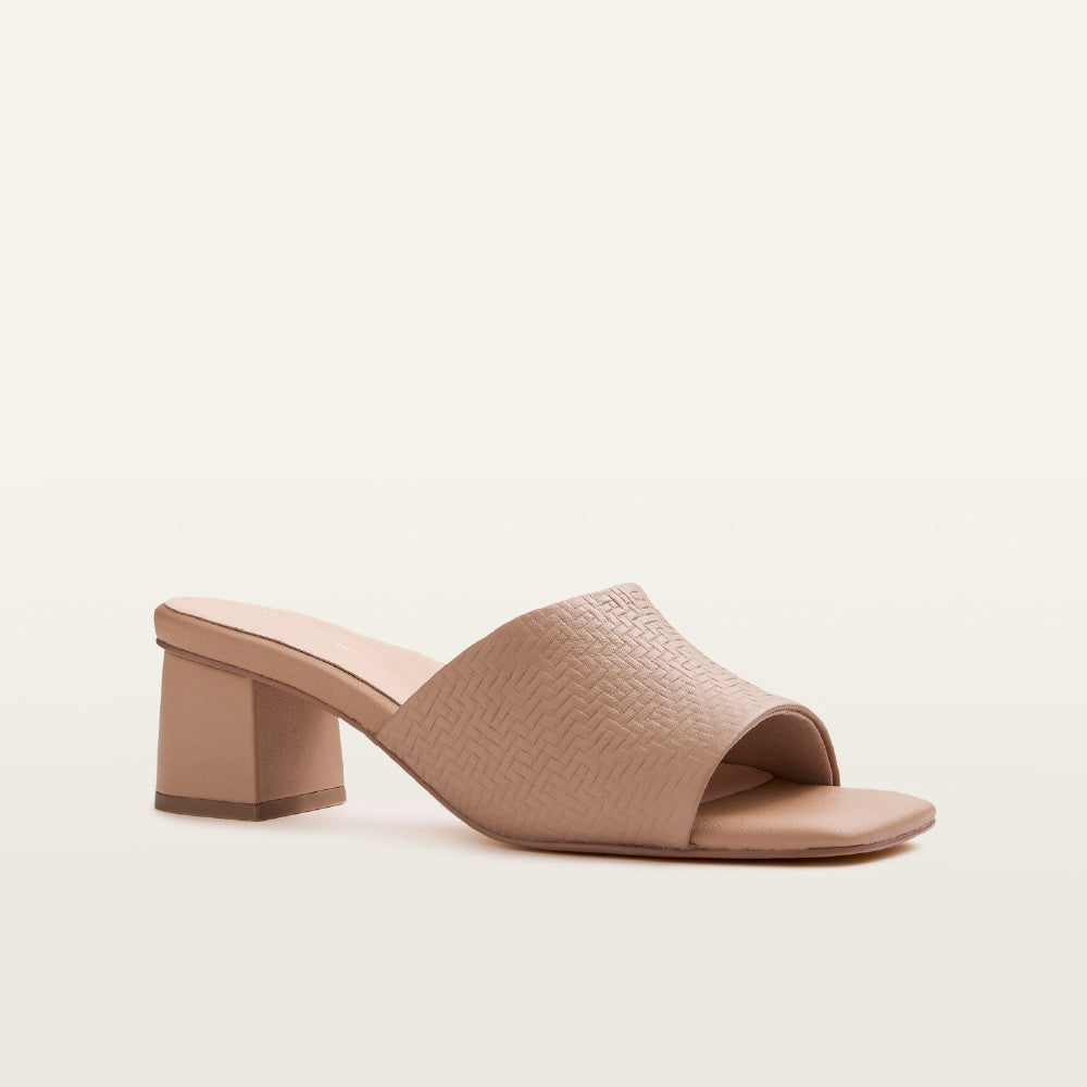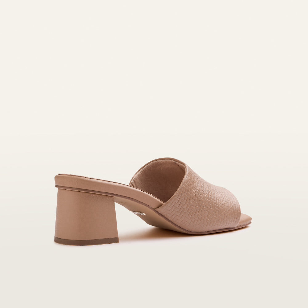 A refined silhouette meets contemporary design with Kennedy in classic Camel Weave. These camel heels bring elegance to any outfit, combining a timeless look with innovative technology. As part of our camel footwear collection, Kennedy offers a contemporary take women's beige heeled mules with an elegant open-toe block heel style, perfect for summer outings. Built upon a sophisticated heel, Kennedy features our LuxaLite® footbed with a dual layer support and cushion system. This streamlined, podiatrist-designed footbed is contoured and moulded with varying densities to deliver slimline, targeted cushioning and support without compromising on elevated style. A defined square toe, embossed upper, and quality leather finish provide the final touches.