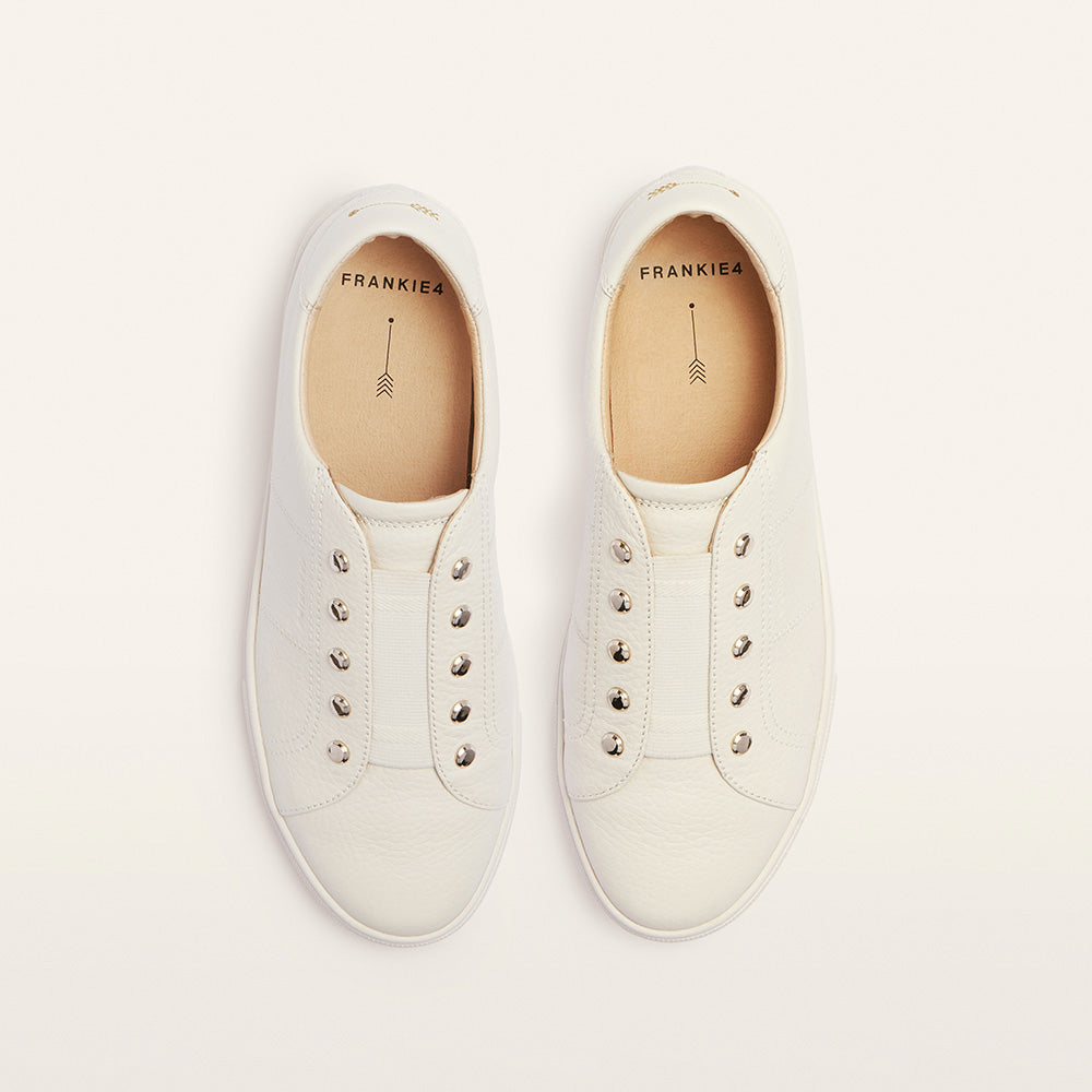 Put a polished twist on a classic with Lee in soft Chalk Tumbled. Finished in off-white tumbled leather, Lee is a lower-profile reinvention of one of our community favourites. Featuring elastic and chic stud detailing, it adds a subtle touch of polish to a classic, neutral sneaker silhouette. A slip-on design built on a lightweight sole with cushioned support, made to carry you effortlessly through the day.