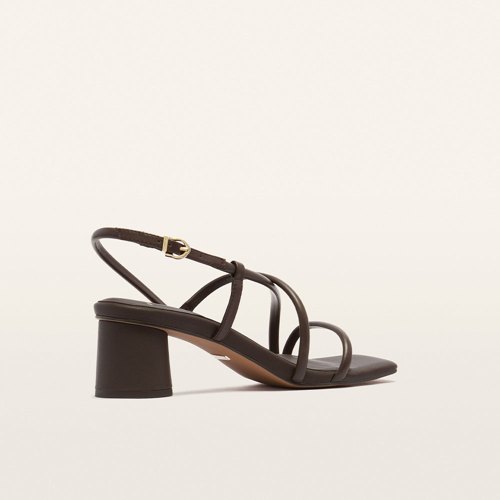 Rich, refined, and endlessly wearable, Lottie in Chocolate is a mid-height brown heel designed to elevate every look. Crafted in smooth leather with a flattering strappy, criss-cross silhouette and adjustable backstrap, this sandal balances style and support. Our podiatrist-designed LuxaLite® footbed delivers lightweight, contoured cushioning for lasting comfort, making Lottie the perfect brown heel for office-to-occasion wear.