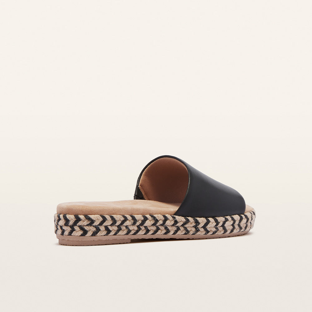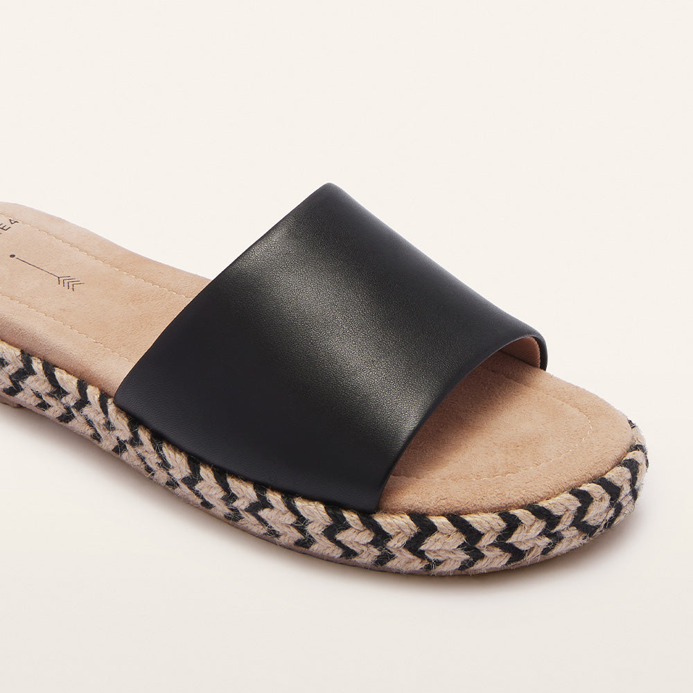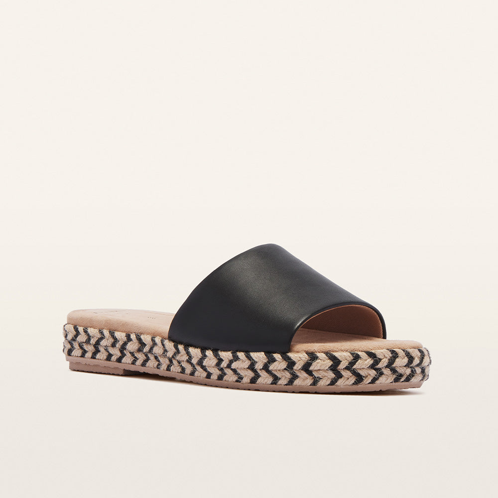 Bring sleek versatility to your wardrobe with Lucia in Black, a slide with a classic mule-style upper. Lucia’s design nods to espadrille style, but at its core, this staple is built like a sneaker, featuring a lightweight, flexible dual-density sole. Our LuxaLite® footbed streamlines comfort, providing contoured cushioning exactly where you need it. Wrap-around jute detailing with subtle accents adds the perfect finishing touch.