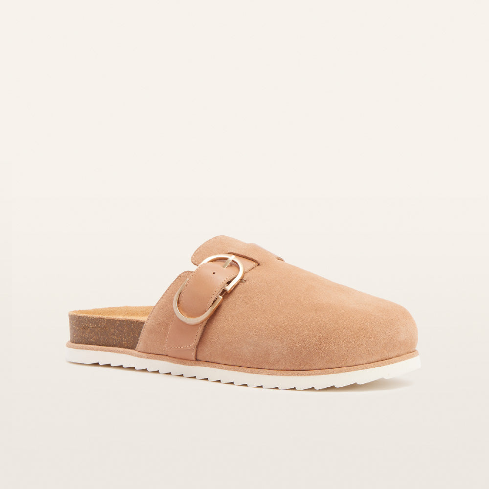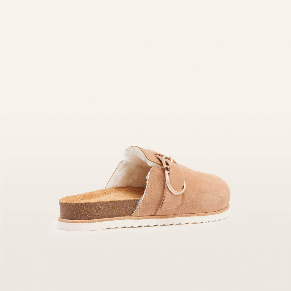 Making relaxed luxury an everyday occurrence—Margot in essential Camel/Shearling. Margot features a dual-layered support and cushion system, a soft suede finish, and our signature footbed moulded with rice husk, contoured precisely for your comfort. With a plush inner of shearling (made from Australian and New Zealand sheep wool) and luxe hardware details on top, Margot is an elevated take on one of our favourite staple slides.