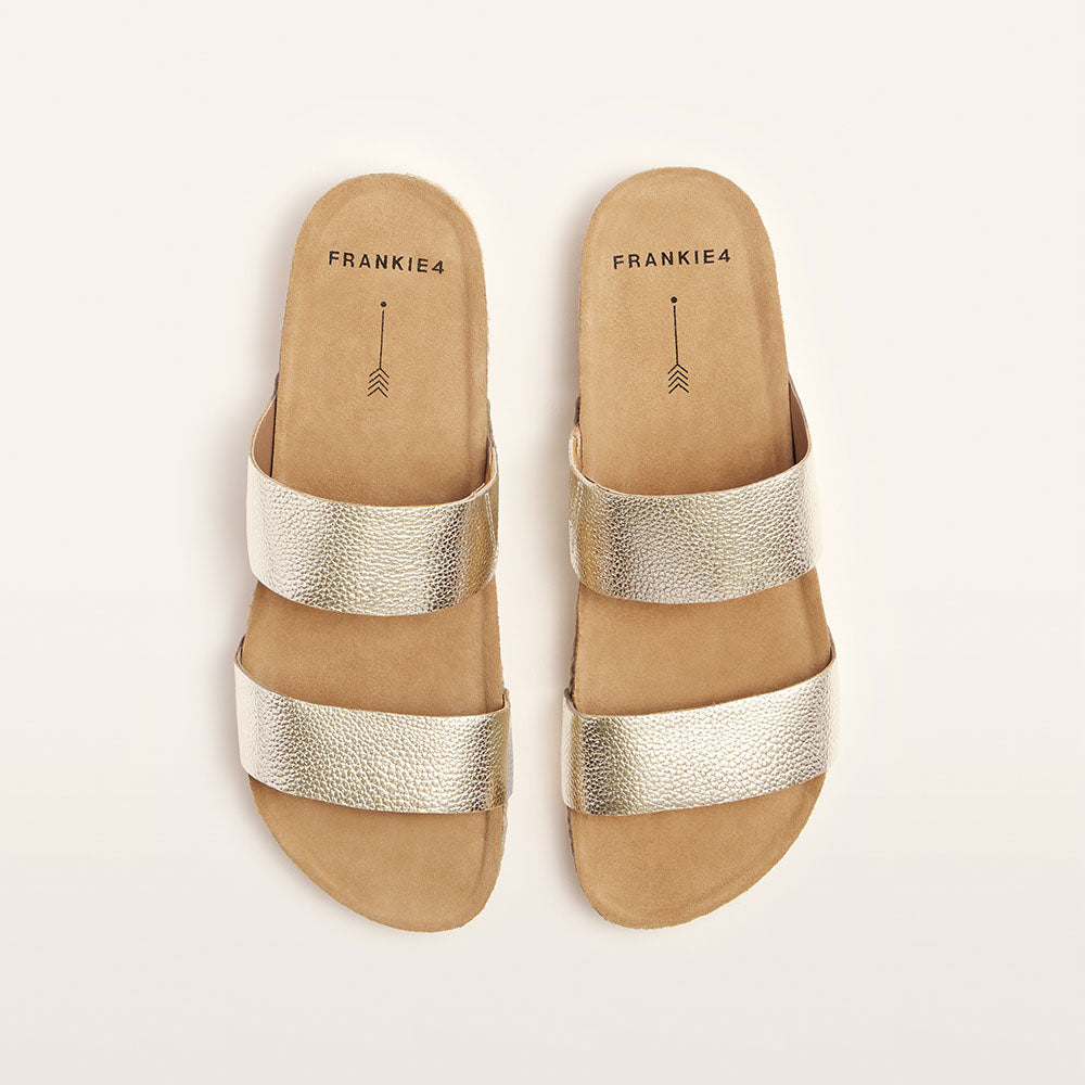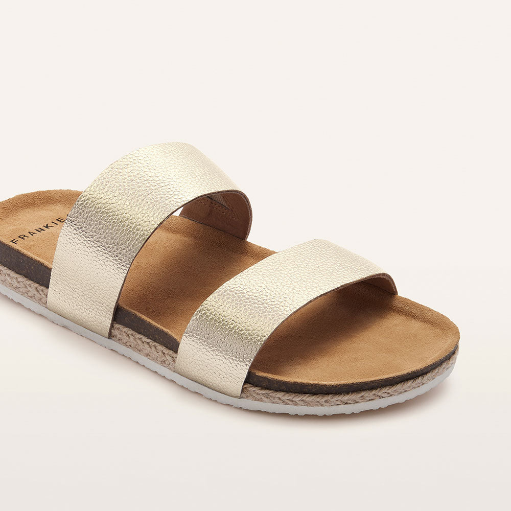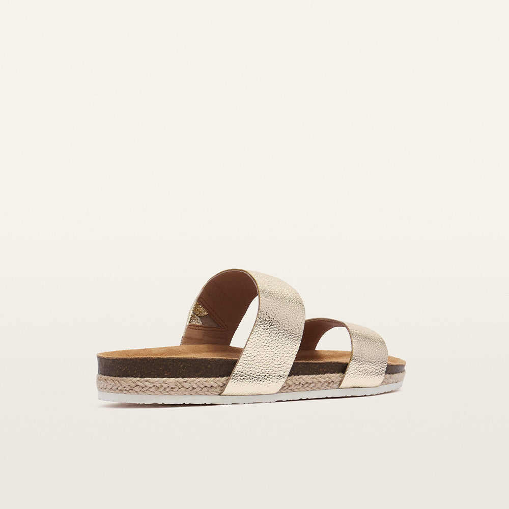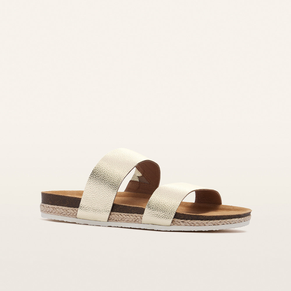 Maria in White Gold Pebbled is a timeless metallic leather slide that elevates warm‑weather style. Crafted in luxe white gold pebbled leather with a dual‑strap silhouette, this easy slide brings a refined shimmer to casual and dressy looks alike. Built on our podiatrist‑designed footbed, supporting arches and cradling soles, Maria delivers effortless comfort and polish from sun‑soaked weekends to relaxed city days.