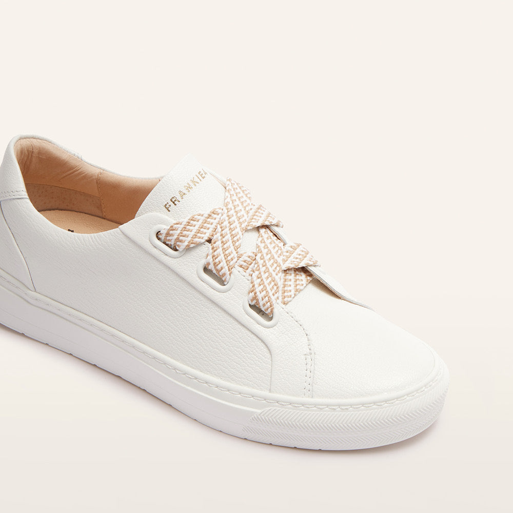 Your favourite wardrobe staple just got an innovative upgrade—discover Mya in classic White Tumbled. Sleek lines and textured leather create an elevated sneaker silhouette, while intelligent design enhances its high-rotation style. Mya features custom fitting options, lightweight construction, and our renowned podiatrist-designed footbed. Large oval shoelace eyelets give Mya her signature look and make for easier access and wear. Plus, new statement laces are included so you can personalise your look and mood. It’s future-proof style and luxe comfort at its best.