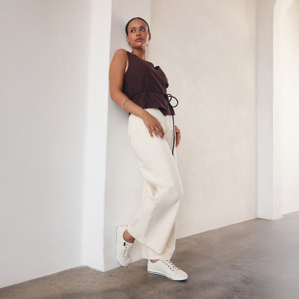 Your number one sneaker for work, travel, and everything in between: Nat in Cream Tumbled. Crafted in soft tumbled leather, this versatile white sneaker delivers all-day comfort, intentional cushioning, podiatrist-designed footbed technology, and luxe support. An elastic gusset lets you wear it with or without laces, making Nat the ultimate go-to sneaker for effortless style wherever life takes you.