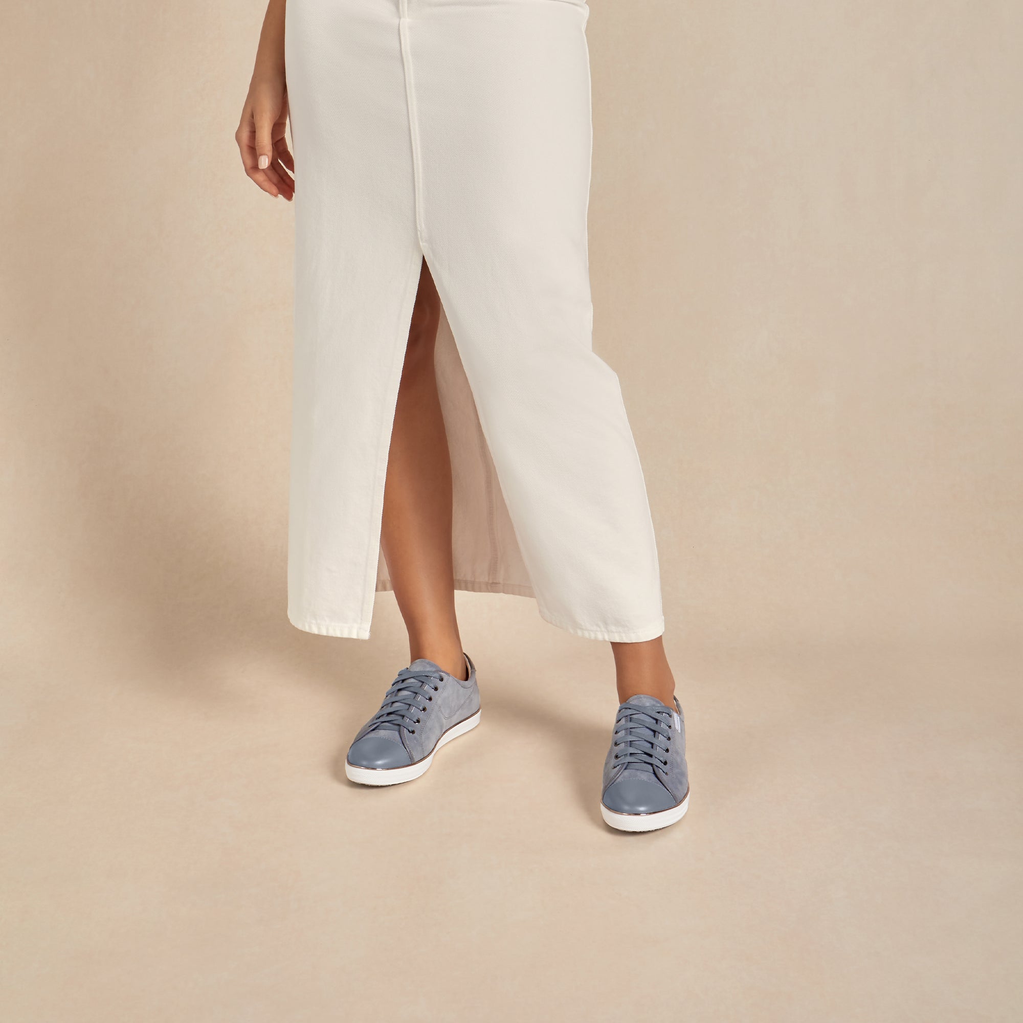 Our number one sneaker just keeps getting better—introducing Nat in staple-worthy Denim Suede. Featuring an innovative support and cushion system and luxe leather details, Nat lends signature style and elevated comfort to each step and every look. For a custom approach to styling, this best-selling pair has an elastic gusset that enables them to be worn with or without laces—you can also customise yours with our array of laces in recycled cotton, statement prints, and shimmering satins.