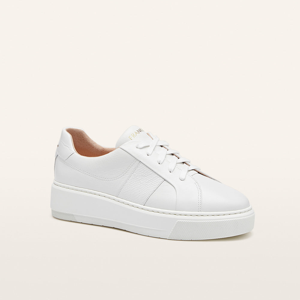 Add a contemporary but timeless addition to your collection with Riley in ultra-luxe White Tumbled. A statement platform sole defines Riley—exaggerated yet sleek design made for high rotation. This white sneaker features a soft, tumbled leather finish, lightweight construction, an innovative support and cushion system, and laces made from recycled cotton, with the ability to be styled with or without them.