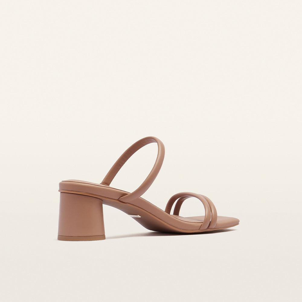 Elegant, essential, versatile: Robbie in Clay, a strappy mid-height block heel with a mule silhouette crafted in luxe leather. Plush dual straps at the forefoot and a smooth upper strap create a refined, comfortable fit, while the podiatrist-designed LuxaLite® footbed delivers lightweight, contoured cushioning exactly where you need it. A neutral heel combining sleek style with the smart comfort your day demands.