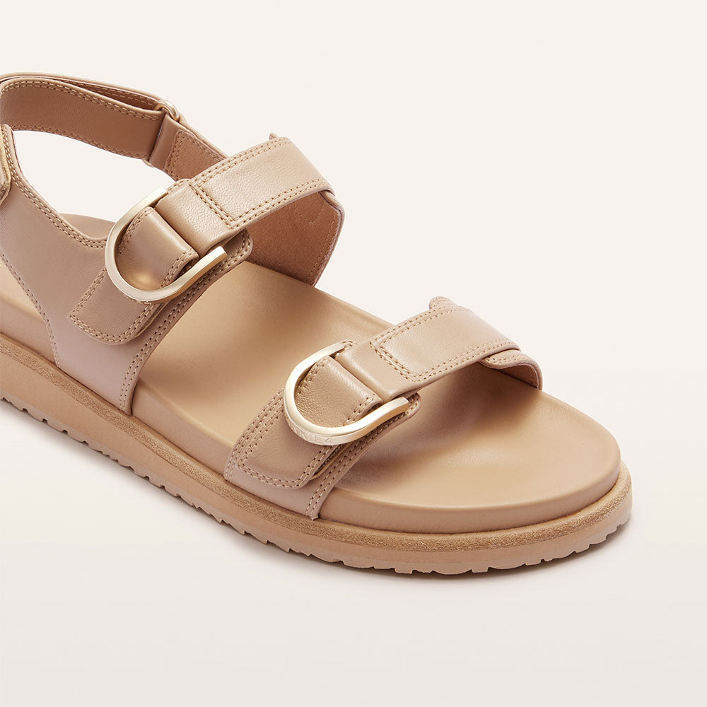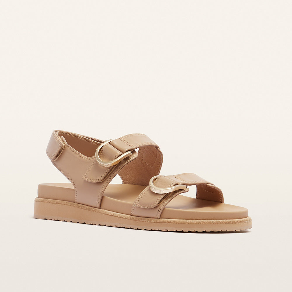 A sports-luxe inspired sandal with a refined edge. Thompson in essential Camel—elevated with matt-finish, next-generation hardware. Fully adjustable upper straps feature a streamlined hook-and-loop system for a personalised fit, while three layers of support and cushioning deliver day-long comfort. Finished with durable rubber soles, it’s built to support every step and every look.