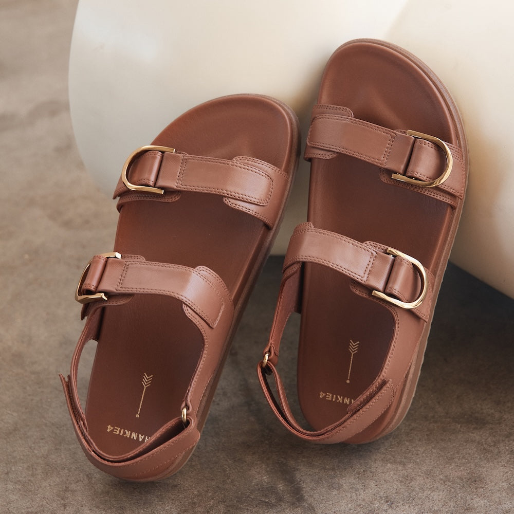 A sports-luxe inspired sandal with a polished finish. Thompson in Rich Tan—elevated with next-generation statement hardware. Fully adjustable upper straps feature a streamlined hook-and-loop system for a personalised fit, while three layers of support and cushioning deliver day-long comfort. Finished with durable rubber soles, it’s brunch-ready and designed to move seamlessly through your day.