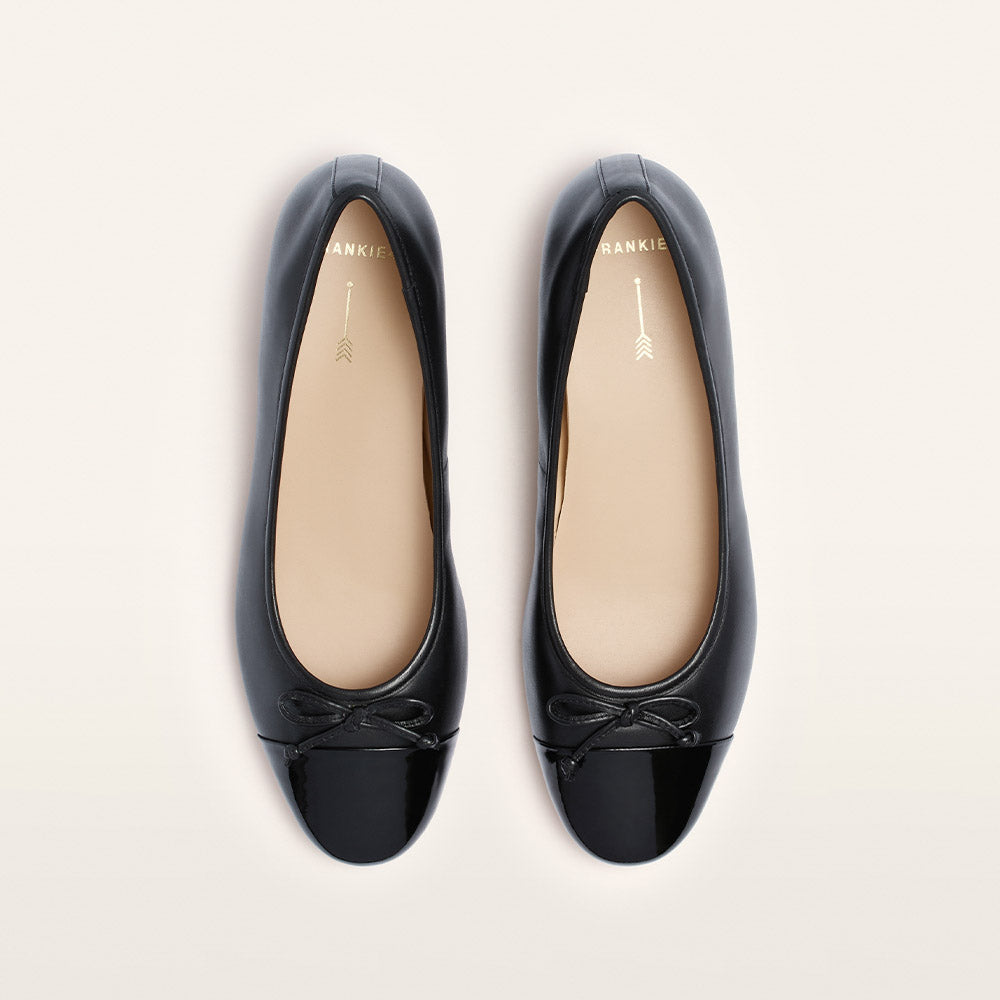 Your go-to dress flat, upgraded: Trinity in Black/Black Patent. Crafted with a sleek patent leather toecap, this black ballet flat combines timeless style with modern comfort. Plush rPET lining—made from recycled bottles—reduces pressure, while hidden arch support and our podiatrist-designed footbed provide all-day wearability. Effortless, polished, and versatile: ballet flats, but better.